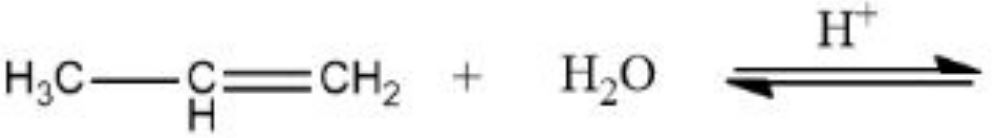 The correct answer is Option (3) → ** The alkene shown is propene ($CH_3-CH=CH_2$) and the reaction is acid-catalysed hydration ($H^+ / H_2O$). Complete statement: The product of the reaction is 2-propanol (isopropyl alcohol), $CH_3-CHOH-CH_3$. Reasoning: In acid-catalysed hydration, water adds to the double bond according to Markovnikov's rule. The hydrogen atom attaches to the carbon that already has more hydrogens, and the -OH group attaches to the more substituted carbon (the middle carbon in propene). This forms 2-propanol, a secondary alcohol. So, the correct structure is $CH_3-CHOH-CH_3$. |