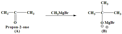 Step 2: Reaction of propan-2-one with Grignard reagent \( \text{CH}_3\text{MgBr} \)