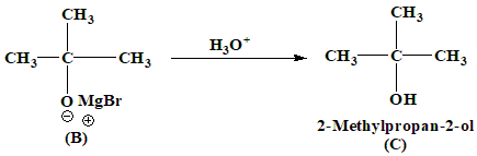 Step 3: Hydrolysis of the alkyl magnesium halide (B) In the final step, the intermediate B is treated with dilute acid (H₃O⁺), which leads to the hydrolysis of the alkyl magnesium halide. This reaction will yield a tertiary alcohol: