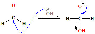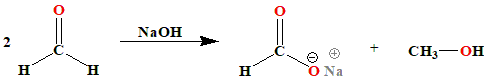 One molecule of aldehyde is reduced to the corresponding alcohol, while a second one is oxidized to the carboxylic acid. Let us look at the mechanism clearly. STEP 1: The reaction initiated by the nucleophilic attack of a hydroxide ion on the carbonyl carbon of a formaldehyde molecule by giving a hydrate anion, which can be further deprotonated in a strongly alkaline medium to give a dianion. Here, the hydroxide behaves as a base.