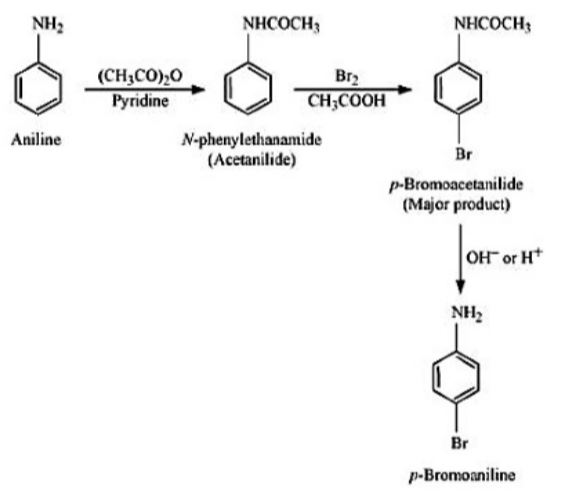 The correct sequence for converting aniline to p-bromoaniline is (A) $Br_2/CH_3COOH$ Arrange the above option from the sentence meaning. Choose the correct answer from the options given below: |