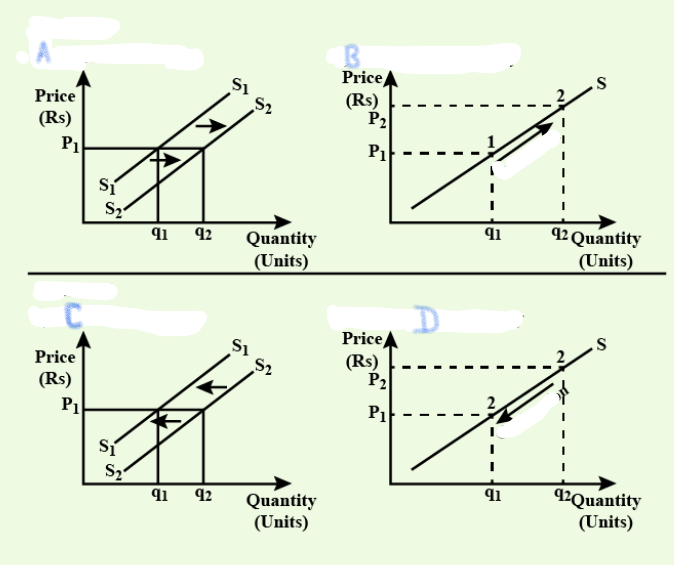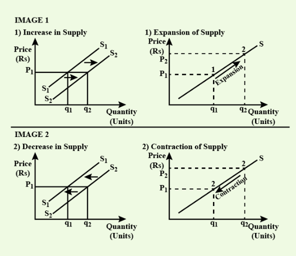 Increase in Supply Decrease in Supply Contraction of Supply Both 2 and 3 |