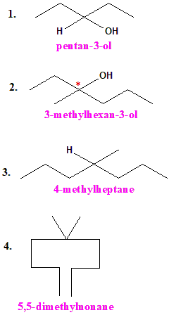 The correct answer is option 2. The structure ans names of the given compounds are : An optically active compound is a molecule that can exist in two non-superimposable mirror image forms called enantiomers. These mirror images have the same chemical formula and bonding but differ in the spatial arrangement of their atoms. For a molecule to be optically active, it requires a chiral center. A chiral center is a carbon atom that has four different substituents attached to it. Let us analyze each option: Pentan-2-ol: This molecule has two chiral centers. However, it also has a plane of symmetry. Molecules with a plane of symmetry can superimpose on their mirror image and are therefore achiral (not optically active). 3-methylhexan-3-ol: This molecule has a chiral center at the third carbon atom. The four substituents around this carbon are different (H, CH₃, CH₂CH₂CH₃, and OH). Since there is no plane of symmetry, this molecule can exist in two non-superimposable mirror images, making it optically active. 4-methylheptane: This molecule only has primary carbon atoms (bonded to four different substituents). Primary carbon atoms cannot be chiral centers. Therefore, the molecule is achiral. 5,5-dimethylnonane: Similar to option 3, both central carbon atoms are bonded to four identical substituents (two methyl groups each). These carbons cannot be chiral centers, making the molecule achiral. Therefore, only 3-methylhexan-3-ol possesses a chiral center and lacks a plane of symmetry, fulfilling the requirements for an optically active compound. |