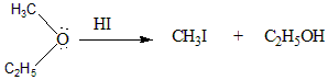 What happens when ethyl methyl ether reacts with hydrogen iodide (HI)? |