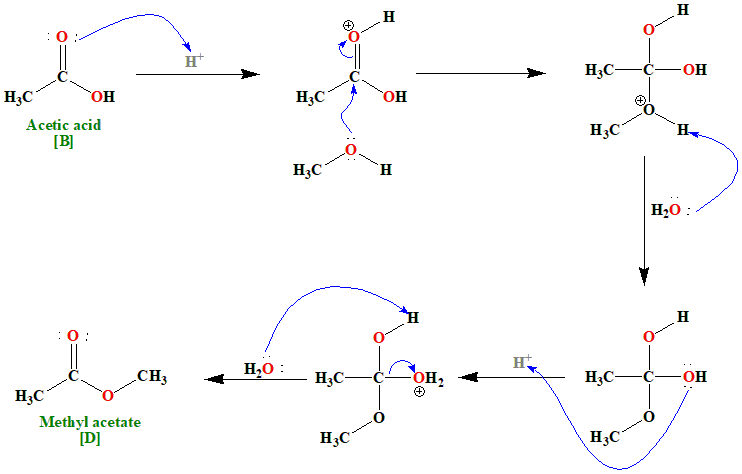 Let us look at the mechanism of formation of ester from carboxylic acid i.e., acetic acid