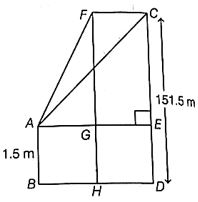 The correct answer is Option (2) → 8 m/s ## We have, height $(h) = 151.5 \text{ m}$, speed of kite $(v) = 10 \text{ m/s}$ Let $CD$ be the height of kite and $AB$ be the height of boy. Let $DB = x \text{ m} = EA$ and $AC = 250 \text{ m}$ $∴\frac{dx}{dt} = 10 \text{ m/s}$ From the figure, we see that $EC = CD - ED \Rightarrow CD - AB$ [$∵ED = AB$] $EC = 151.5 - 1.5 = 150 \text{ m}$ and $AE = x$ [$∵DB = AE$] Also, $AC = 250 \text{ m}$ In right angled $\triangle CEA$, $AE^2 + EC^2 = AC^2$ $\Rightarrow x^2 + (150)^2 = y^2 \dots(i)$ $\Rightarrow x^2 + (150)^2 = (250)^2$ $\Rightarrow x^2 = (250)^2 - (150)^2$ $= (250 + 150)(250 - 150) = 400 \times 100$ $∴x = 20 \times 10 = 200$ From Eq. (i), on differentiating w.r.t. $t$, we get $2x \cdot \frac{dx}{dt} + 0 = 2y \frac{dy}{dt}$ $\Rightarrow 2y \frac{dy}{dt} = 2x \frac{dx}{dt}$ $∴\frac{dy}{dt} = \frac{x}{y} \frac{dx}{dt}$ $= \frac{200}{250} \cdot 10 = 8 \text{ m/s}$ $[∵\frac{dx}{dt}=10\,m/s]$ So, the required rate at which the string is being let out is 8 m/s. |
