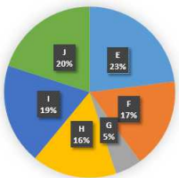 The pie chart given below shows the number of girls in six schools. The total number of girls in all these six schools are 4000. Number of girls in a particular school is shown as a percentage of total number of girls in all these six schools. What is the value of central angle formed by sector F? |