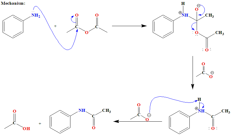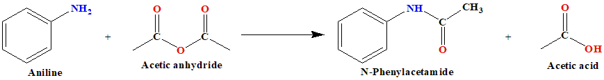 The correct answer is option 2. N-Phenylacetamide. When aniline \((C_6H_5NH_2)\) undergoes acylation with acetic anhydride, it forms an amide by replacing the hydrogen atom on the nitrogen with an acetyl group \((CH_3CO^-)\). The product of this reaction is N-Phenylacetamide (also known as acetanilide).