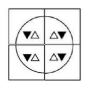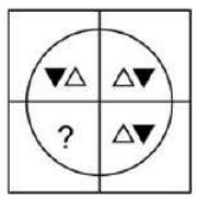 To complete the pattern, we must place the black triangles on the outside and white on the inside, such that option figure #2 will complete the pattern: |