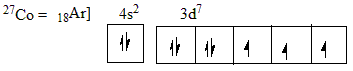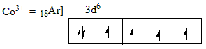 We know that \(NH_3\) is a strong field ligand and will lead to the pairing of electrons while \(Cl^-\) is a weak field ligand but due to the higher number of the \(NH_3\) ligand it will dominate and cause pairing of electrons. So, the new configuration of the central metal ion will be: