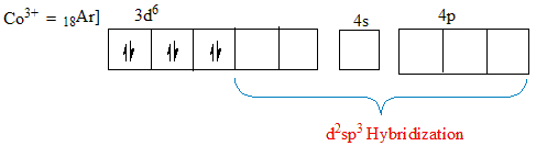 So the hybridization will be \(d^2 sp^3\) and it is an outer orbital complex. |