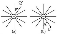 For the given field lines for a positive and a negative point charge respectively, which of the following is correct? |