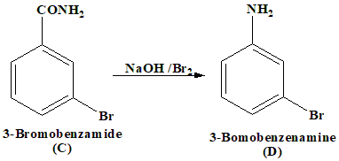 This step involves the Hofmann degradation of 3-bromobenzamide using sodium hydroxide (\(\text{NaOH}\)) and bromine (\(\text{Br}_2\)). In this reaction, the amide is converted to a primary amine (3-bromobenzamine) by the loss of one carbon atom. This reaction is a common method for reducing amides to amines.