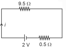 A battery of 2 V and internal resistance of 0.5 Ω is connected across a resistance of 9.5 Ω. The number of electrons passing through the resistance in 1 second. |