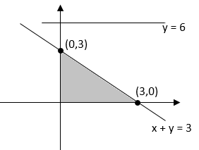 The feasible region represented by the system of inequalities $x+y≤3,y≤6, x≥0, y≥0$ is : |
