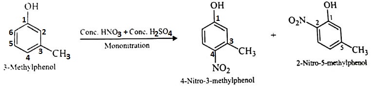Write the major product when 3-methylphenol is subjected to mononitration. |