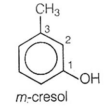 The correct answer is Option (1) → 3-Methylphenol m-Cresol contains a benzene ring with two substituents - one hydroxyl (-OH) group and one methyl ($-CH_3$) group. Since -OH has higher priority, the parent compound is phenol. The methyl group is located at the meta (3rd) position relative to the -OH group, so the correct IUPAC name becomes 3-Methylphenol. Option 1: 3-Methylphenol This correctly represents the structure of m-cresol. The hydroxyl group is treated as the principal functional group and assigned position 1, while the methyl group is located at position 3 (meta position). Hence, this is the correct IUPAC name. |
