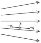 The correct answer is Option (1) → the dipole will experience a force towards left The force exerted by electric field on '-q' is greater and in the left direction as compare to force exerted by electric field on '+q' in the right direction. ∴ The dipole will experience net force in left direction. |