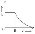 The correct answer is Option (3) Case 1: $r<R$ The electric field is zero because the net charge inside a Gaussian shell is - $E=0$ Case 2: $r≥R$ The electric field is as if the entire charge is concentrated at the center - $E=\frac{1}{4πε_0}\frac{Q}{r^2}$ |