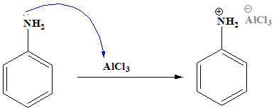 Aniline does not undergo Friedel-Crafts reaction because (A) It forms salt with Lewis acid catalyst, \(AlCl_3\) (B) Nitrogen of aniline acquires negative charge. (C) Nitrogen of aniline acquires positive charge (D) Nitrogen acts as a strong deactivating group in the further reaction. Choose the correct answer from the options given below: |