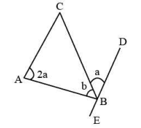 We have, ∠CAB = 38 ∠ABC = b ∠CBD = a ∠CAB = 2a According to the question, 2a = 38o ∠CBD = a = 19o ∠CAB + ∠ABD = 180 (Because AC and BD are parallel) ⇒ 2a + b + a = 180o ⇒ 38 + b + 19 = 180o ⇒ b = 180 - 57 ⇒ b = 123o ∴∠ABC = 123o Now, ∠ABC + 5 ∠CBD = 123 + 5 × 19 = 123 + 95 = 218o |