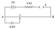 In the given figure, the potentiometer wire, AB has a resistance of 5 Ω and length 10 m. The balancing length AJ for 0.4 V is nearly: |