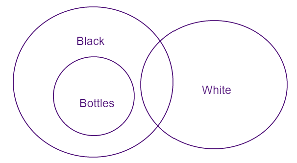 1. All blacks being bottles is not a possibility based on statement 1, thus, conclusion I does not follow. 2. Statement 2 is a positive statement, thus a negative conclusion cannot be drawn from it and thus, conclusion II does not follow. ⇒ Thus, neither conclusions follow. |