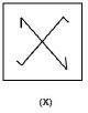Figure (X) consists of two intersecting slanted bars with specific end bends.
