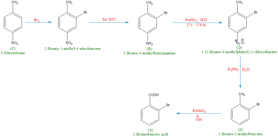 Correct sequence of conversion of 4-Nitrotoluene to 2-Bromobenzoic acid is