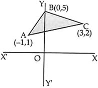 The correct answer is Option (1) → $\frac{15}{2} \text{ units}^2$ $(-1, 1)$, $(0, 5)$ and $(3, 2)$ Eq. of side AB: $y - 1 = \frac{5 - 1}{0 + 1}(x + 1)$ $⇒y = 4x + 5$ Eq. of side BC: $y - 5 = \frac{2 - 5}{3 - 0}(x - 0)$ $⇒y = 5 - x$ Eq. of side AC: $y - 1 = \frac{2 - 1}{3 + 1}(x + 1)$ $⇒y = \frac{x + 5}{4}$ $\text{Required area of } \triangle ABC$ $= \int\limits_{-1}^{0} (4x + 5) \, dx + \int\limits_{0}^{3} (5 - x) \, dx - \int\limits_{-1}^{3} \left( \frac{x + 5}{4} \right) \, dx$ $= \left[ \frac{4x^2}{2} + 5x \right]_{-1}^{0} + \left[ 5x - \frac{x^2}{2} \right]_{0}^{3} - \frac{1}{4} \left[ \frac{x^2}{2} + 5x \right]_{-1}^{3}$ $= (0 + 3) + \left( \frac{21}{2} - 0 \right) - \frac{1}{4} \left( \frac{39}{2} + \frac{9}{2} \right)$ $= 3 + \frac{21}{2} - 6 = \frac{15}{2} \text{ units}^2$ |