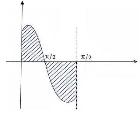 y = cos x x = 0 to x = π so area from 0 to $\frac{\pi}{2}$ is positive area from $\frac{\pi}{2}$ to $\pi$ is negative So Area $=\int\limits_0^{\frac{\pi}{2}} \cos x d x+\left(-\int\limits_{\frac{\pi}{2}}^\pi \cos x d x\right)$ [to make area positive -ve sign added] ⇒ $[\sin x]_0^{\frac{\pi}{2}}-[\sin x]_{\frac{\pi}{2}}^\pi$ = (1 - 0) - (0 - 1) = 2 sq. units |