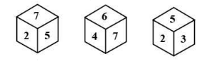 Step 1) In figure 1 and 3 Step 2) Compare both the figure and we find out 2 and 5 both are common Step 3) Therefore 7 is the Number which will be opposite to 3. Step 4) Acc to the options given 7 can never be adjacent faces of 3 so that option 1 is correct . It will be adjacent to 6 and 4 |