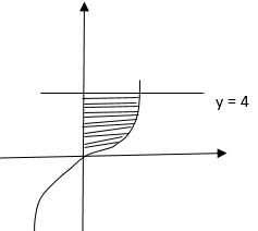 y → 0 y → 4 area of curve = $\int\limits_0^4y^{\frac{1}{3}}dy=\left[\frac{3y^{\frac{4}{3}}}{4}\right]_0^4$ $=3×4^{\frac{1}{3}}$ sq. units |
