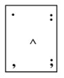 Name the corners as ABCD and centre as Z. Arrow change position from A to B to D to C. Single dot change position from A to D to C to Z. Single coma change position from C to Z to A to B. Ratio sign change position from Z to A to B to D. Therefore next image will be:-