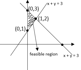 $Z=x-y$, $x+y ≤3,$ $y-x ≥ 1$ Solving $x+y=3$ $y-x=1$ we get, $x=1,y=2$