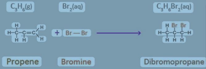 Option 1: 1,2-Dibromopropane Correct because bromine adds across the double bond. Option 2: 2,2-Dibromopropane Incorrect because addition is across both carbons, not geminal. Option 3: Propyl bromide Incorrect because this would require substitution. Option 4: 2-Bromopropane Incorrect because this would require HBr addition. |