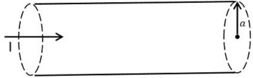 The figure shows a long cylindrical straight wire of radius $a$ carrying steady current ($I$). The current ($I$) is uniformly distributed across the cross-section of the wire. The ratio of the magnetic fields at points $r =\frac{a}{3}$ and $r =\frac{a}{2}$ respectively is: Here $r$ is the distance of point from the axis of cylinder. |