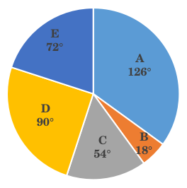 The breakup of the total number of employees of a company working in different offices (A to E), in degrees, is given in the pie chart. Total number of employees = 2400. If 40%, of the number of employees in office A are shifted equally to office B and E, then what will be the sum of the number of employees in B and C ? |