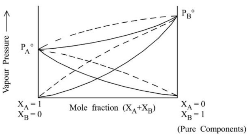 \(\Delta V_{mix} = negative\)= \(\Delta V_{mix} = positive\) \(\Delta H_{mix} = negative\) 4. \(P_A < P_A^oX_A\) |