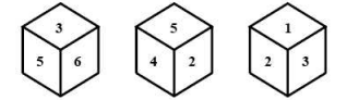 Three different positions of the same dice are shown. Select the number that will be on the face opposite to the one having 5. |