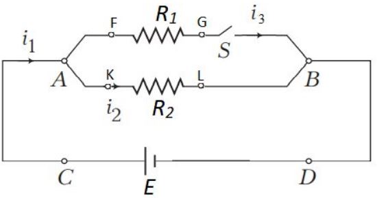 In the circuit diagram shown in the figure, the resistance $R_1 = 10Ω, R_2 = 15Ω$ and $E= 20 V$. When the switch S is closed, the ratio of $i_1$ to $i_3$ will be |