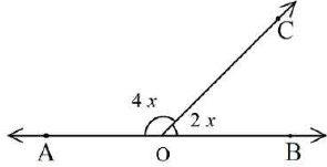In the figure, ∠AOC and ∠BOC form a linear pair. The value of x is