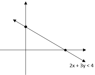 checking for (0, 0) $2(0)+3(0)<4$ so solution region is on open half plane containing origin below space by line $2x+3y=4$ |