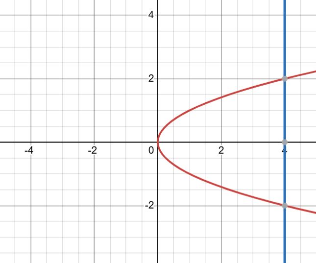 The correct answer is Option (2) → $\frac{32}{3}$ Given curves: $y^2 = x$ and $x = 4$ To find the area enclosed between the parabola and the vertical line $x = 4$, express $x$ as a function of $y$: $x = y^2$ We need the area between $x = y^2$ and $x = 4$ from $y = -2$ to $y = 2$, since $x = y^2 = 4 \Rightarrow y = \pm 2$. So, area = $\int_{-2}^{2} \left( 4 - y^2 \right) dy$ $= \left[ 4y - \frac{y^3}{3} \right]_{-2}^{2}$ $= \left( 4(2) - \frac{(2)^3}{3} \right) - \left( 4(-2) - \frac{(-2)^3}{3} \right)$ $= \left( 8 - \frac{8}{3} \right) - \left( -8 + \frac{8}{3} \right)$ $= \left( \frac{24 - 8}{3} \right) - \left( \frac{-24 + 8}{3} \right)$ $= \frac{16}{3} - \left( \frac{-16}{3} \right) = \frac{32}{3}$ |