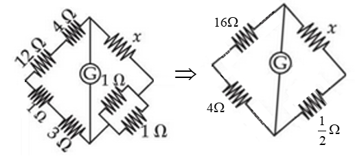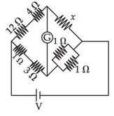 Given below is an arrangement of resistors in the form of a Wheatstone Bridge. Find the value of x so that the galvanometer holds zero reading. |