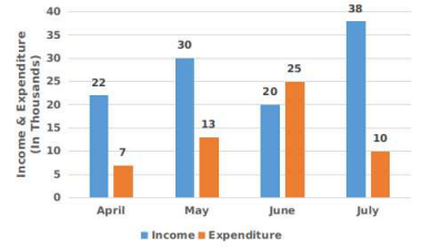 The given bar graph represents the income and expenditure of a person during the four consecutive months, April to July, 2019. What is the average expenditure of the person? |