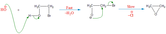 Statement I: Treatment of HOCH2CH2Br with OH− in H2O gives mainly Statement II: O− acts as a nucleophile in the reaction |