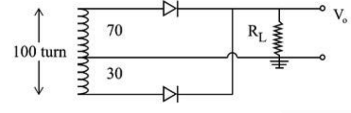 The correct answer is option (3) : As tapping in transformer is not in centre, the ratios of number of turms is 70:30 therefore output have different magnitude (in ratio 70:30) in positive and negative cycles. |