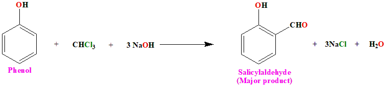 What happens when phenol reacts with chloroform in the presence of sodium hydroxide? |