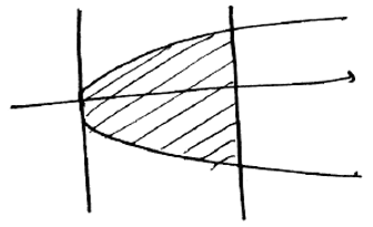 y2 = 8x so $y = 2\sqrt{2}\sqrt{x}$ x > 2 area in 1st quadrant = area of 4th quadrant ⇒ area in 1st quadrant × 2 $=2 \times \int\limits_0^2 2 \sqrt{2} \sqrt{x} d x$ $=4 \sqrt{2}\left[\frac{2 x^{3 / 2}}{3}\right]_0^2=\frac{4 \sqrt{2} \times 2 \times 2 \sqrt{2}}{3}$ ⇒ $\frac{32}{3}$ sq. units |